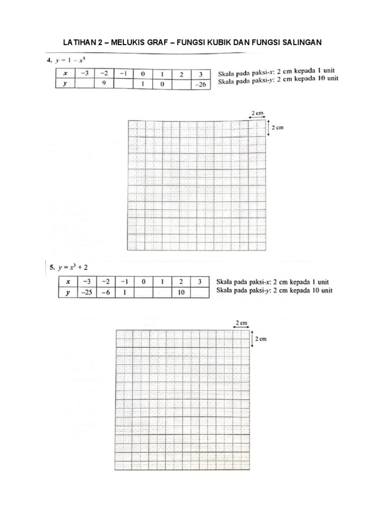 Kalau soalan Set tiada maka 2 soalan graf fungsi akan dikemukakan Bhgn A dan B. 20 Melukis graf dengan menandakan titik pada skala yang ditetapkan. Menggunakan skala 2 cm kepada 1 unit pada paksi- x dan 2 cm kepada 2 unit.